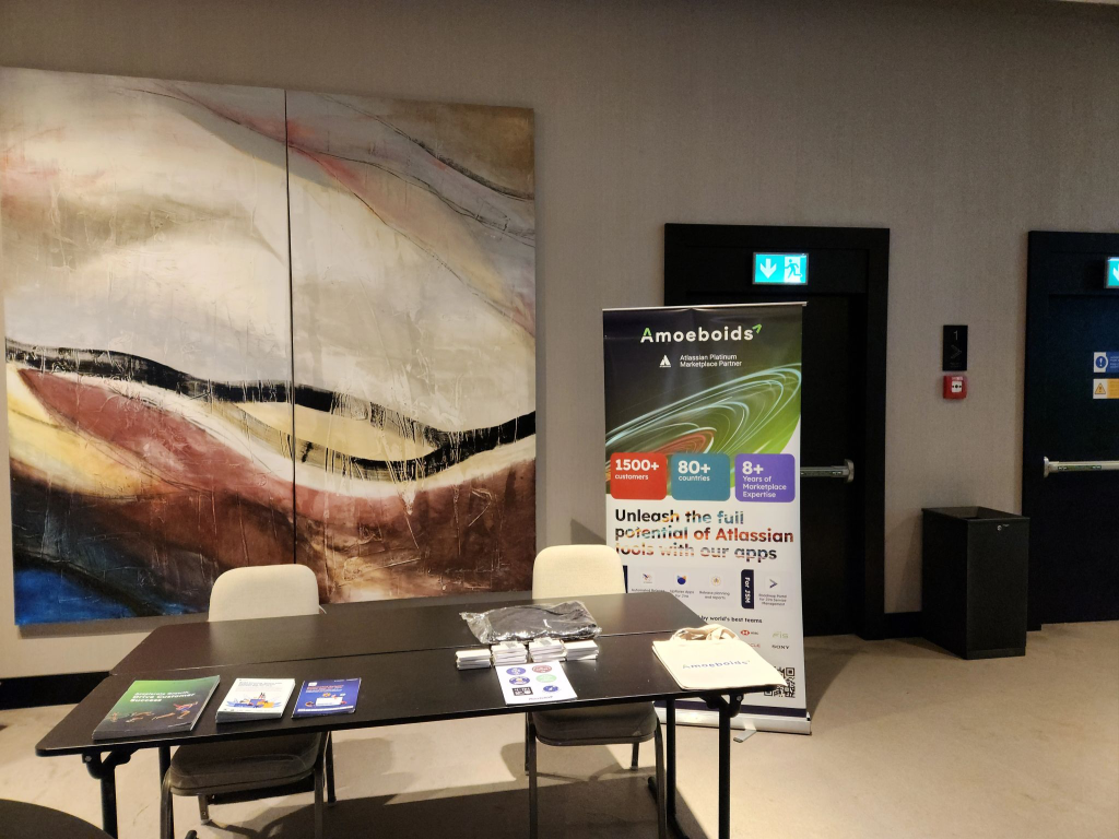 We started the day by setting up our booth. Apart from Amoeboids, there were booths by Adaptavist, Refined & HYCU. Organising team was kind enough to let us add some of our swag items to the ‘Welcome kit’. Many attendees liked our fun set of stickers & stopped by our booth to tell us so. Tell us which one you like the most from below?